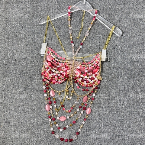 X22573C不規則形状アクリルビーズサスペンダー女性中空タッセルバックレスショートトップビーチ島トラベルパールY2kボディコン